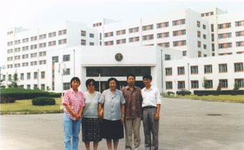 图三、郑竺英与立体视觉研究组同志合影(左起:张景芝、周桂荣、郑竺英、金贵昌、陈亚胜)摄于1996 年