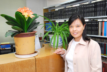 每当听到所内外读者赞叹“图书馆的环境真好”时我的心里就美滋滋的,因为这里有我付出的心血:将期刊架重新排列,扩大了阅览厅的空间;在图书馆醒目位置设置宣传栏、新书架等,方便读者查找文献;制作闭馆音乐,提供人性化服务;合理摆放花卉,美化环境,为读者营造温馨、幽雅的书香氛围。说到图书馆的花卉就不能不提我们可敬的园丁李志清师傅,在郁郁葱葱的花卉里有李师傅倾注的汗水,8 年的耳濡目染也使我从“花盲”变成了“花迷”,尤其是看着自己亲手栽培的花卉一点点地长出新芽时,那种感觉真的特别好!我深爱着这里的书、这里的人、这里的一草一木,每天忙并快乐着,内心感到无比充实!