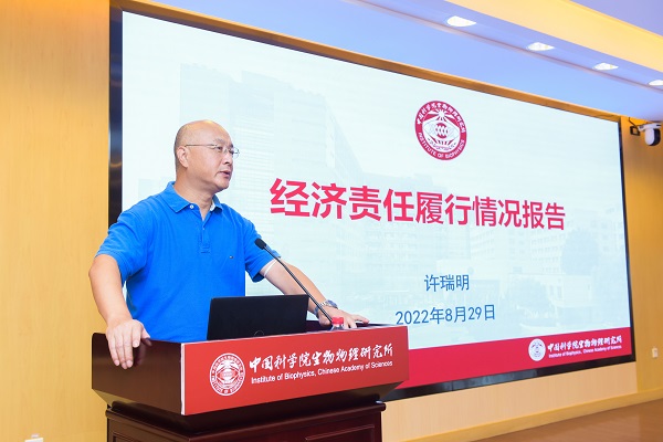 许瑞明所长作任期经济责任履行情况报告,从研究所历史沿革,本届班子和主要领导基本情况,履行经济责任所做的主要工作,党建、创新文化及党风廉政建设,任职期间主要风险点和应对措施等方面进行总结汇报。他表示,生物物理所将把本次经济责任审计作为提升研究所管理水平的重要机会,高度重视、全力配合,确保本次审计工作圆满顺利完成,对于审计发现问题将认真组织整改、确保取得实效。