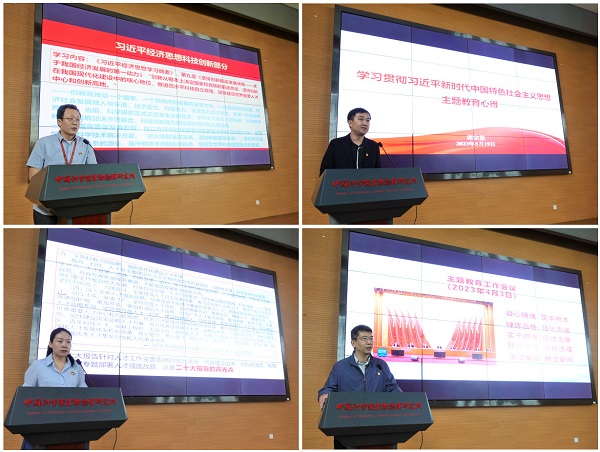 会上,党群工作部、综合处、人事处、资产财务处负责同志先后作了发言,汇报了参加主题教育读书班学习体会。