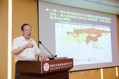 2019年6月28日,生物物理所组织召开“不忘初心、牢记使命”主题教育形势教育大会暨年轻干部深入学习习近平新时代中国特色社会主义思想学习组成员进行了第七场专题学习。中科院地理科学与资源研究所首席研究员董锁成作了题为“一带一路资源环境格局与绿色发展模式”的专题报告。生物物理所各党支部组织党员150余人参加报告会。党委书记汪洪岩主持大会。