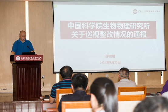 按照院党组的统一部署,2019年10月15日至10月30日,院党组巡视组对生物物理所进行了政治巡视。2020年3月24日,院巡视工作领导小组向研究所正式反馈了巡视意见,共七个方面35个问题。7月14日,研究所向院巡视工作领导小组报告了整改情况,已获得原则通过。