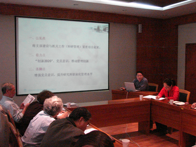 随后,杨书记代表所领导班子向大家通报了研究所近期的研究所和党委的重点工作。的。他强调,尽管我们的状态不错,但也面临严峻的挑战。现在研究所正在抓紧制定“创新2020”实施方案,争取做到“首批进入”,因此要求各总支、支部紧密围绕中心工作,服务科研、服从大局,积极谋划在“创新2020”中“创先争优”的新举措、新做法,进一步提升基层党建工作的科学化水平,为建设一流的和谐研究所做出新的贡献。