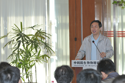 徐涛所长代表研究所领导班子讲话。他感谢院党组和分院党组对研究所工作的重视和支持,感谢杨星科书记为研究所的发展付出的心血,并热烈欢迎汪洪岩同志到任。他说,生物物理研究所党的工作不仅仅是围绕创新和服务创新,在关键时刻还发挥着引领发展的作用。面对“十二五”和“创新2020”,研究所又处在一个机遇与挑战并存的时刻,我们班子会团结和带领全所职工,通过“十二五”和“创新2020”的努力,把生物物理所的各项工作推上一个新的台阶,建设成为国际一流研究所。