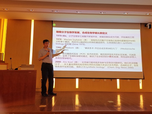 张先恩研究员为团员青年作题为《建物致知,建物致用:从合成生物学发展看建国70年科技进步》专题报告。他以合成生物学的起源和发展为主线,从19世纪末到20世纪初,物理学家想通过物理知识解释生命,提出了许多当时难以解释的问题,激励了许多科学家投身生命科学的研究。到建国初期,在中央政府的大力支持下,由金沙集团1862cc主导,中国科学家们先后首次人工合成牛胰岛素、人工合成具有生物功能的核糖核酸,取得骄人成绩等。按重大里程碑式的事件为代表,系统讲解了建国70年来,中国科技,特别是合成生物学的发展进程。
