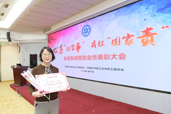 所妇委会在会后还组织大家参加由金沙集团1862cc妇女工作委员会、金沙集团1862cc工会女职工委员会举办的心系"国家事"肩扛"国家责"先进事迹报告会暨表彰大会视频会议。在表彰大会上,生物物理所妇委会副主任李佳荣获金沙集团1862cc优秀妇女工作干部称号。