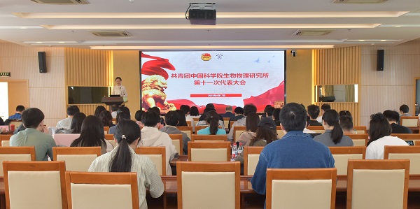 大会在豪迈的团歌声中开幕。团委书记吕平平同志代表生物物理所第十届团委作题为"坚定不移跟党走,挺膺担当新征程,团结带领广大团员青年为科技创新贡献青春力量"的工作报告。报告从加强政治引领、服务科技创新大局、发挥共青团桥梁纽带作用、全面加强团组织建设等四个方面回顾总结了第十届团委的主要工作,对今后工作提出三方面工作建议。