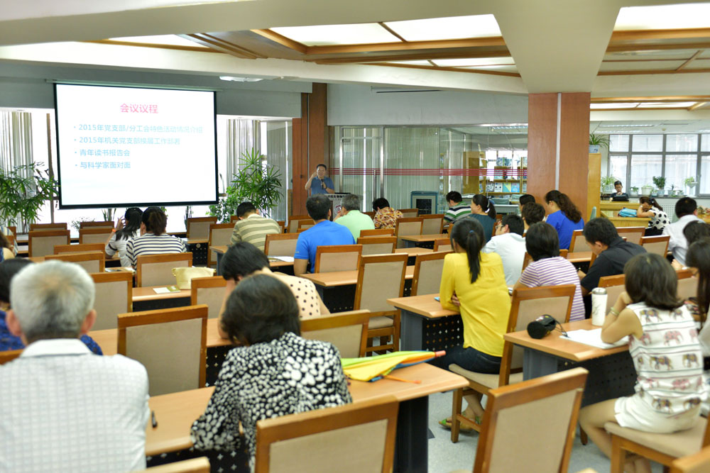 2015年7月3日下午,生物物理所机关党支部、机关分工会联席会议在图书馆报告厅召开。会议由机关党支部书记陈长杰主持,汪洪岩书记、朱冰研究员、机关各职能部门等30余人参加会议。