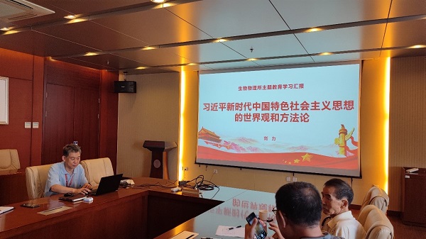 为深入学习贯彻习近平新时代中国特色社会主义思想,7月19日,生物物理所召开离退休党支部专题学习。党委书记刘力同志向离退休老同志作了近期所情通报,并以《习近平新时代中国特色社会主义思想的世界观和方法论》为题,为老同志作专题党课报告。离退休党(总)支书记、委员及离退休理论学习组部分党员及离退休职工代表聆听了报告。