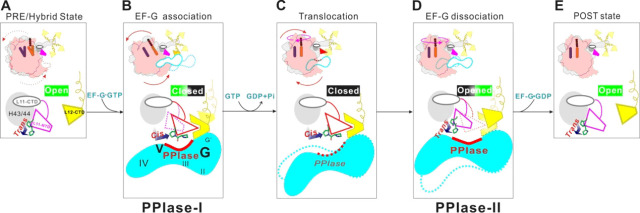 秦燕研究组研究发现,在核糖体的翻译因子结合部位,存在一个脯氨酰开关(Proline Switch), 它的构象决定核糖体对翻译因子的招募与否。深入研究发现,控制该开关的酶就是翻译因子。因此,核糖体与翻译因子之间存在着对彼此的共调控。而这种调控关系,在所有的蛋白质翻译G蛋白(trGTPase)与核糖体之间存在,说明其具有普遍意义:在翻译的全部过程中,包括起始、延长、终止和再循环,都由这个脯氨酰开关调控招募翻译G蛋白。