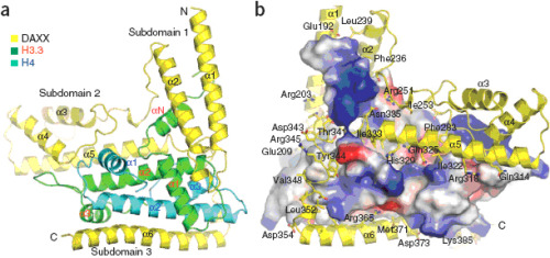 图解:人源DAXX与组蛋白H3.3-H4复合体的晶体结构