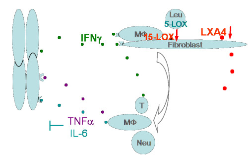 图一 IFNγ通过下调LXA4的合成维持非可控炎症,并抑制肿瘤消退