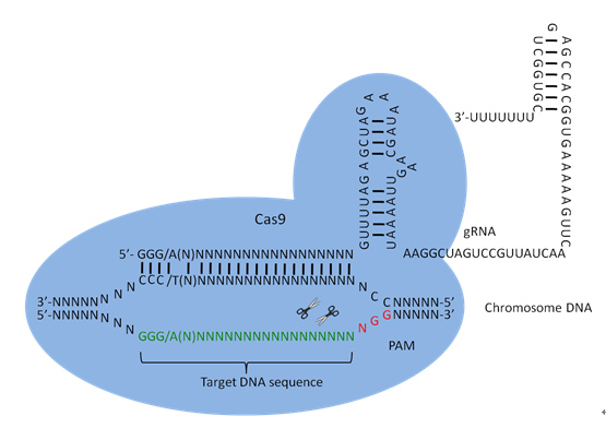 图一、CRISPR/Cas9介导的基因组修饰技术的工作原理