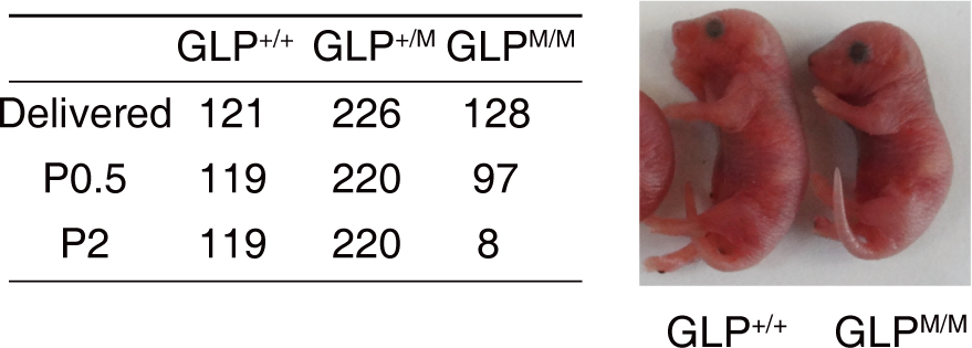 图示、组蛋白甲基化酶GLP的H3K9甲基化结合能力为小鼠出生后存活所必需