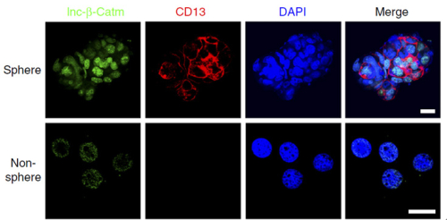 图例:lnc-β-Catm在肝癌干细胞核中高表达。