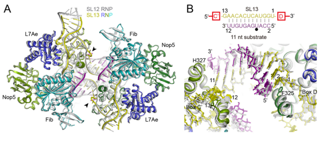 图示:SL13 和SL12底物结合的C/D RNP结构对比(叶克穷组提供)