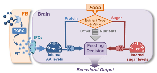 对于动物而言,进食是一种先天行为。合理的食物摄取是生存、健康以及繁育高素质后代的保障。虽然促进进食的食欲信号已被广泛研究,但人们对进食终止的机制仍知之甚少。2017年1月19日,一篇题为“果蝇FIT作为一种蛋白质特异性的饱腹激素调控进食”的报道在“Nature Communication”发表,对这一重要的科学问题进行了探索。