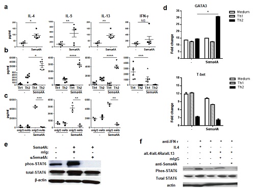 Semaphorin是一大类分泌型或跨膜型糖蛋白分子,参与机体多项重要生理过程的调节,包括调控神经系统的轴突发育,血管形成, 骨分化,心血管发育等。根据其组成特点将其分为8型。其中有部分家族蛋白分子参与免疫功能的调节从而将其命名为Immune Semaphorin,如Semaphorin 4D(Sema4D,又名CD100)、Semaphorin 3A(Sema3A)、和Semaphorin 7A (Sema7A)等。鼠源Semaphorin 4A(mSema4A)具有刺激T细胞增殖和调节T细胞的Th1分化发育的功能,且鼠源Semaphorin 4A可以通过受体分子Tim2活化T细胞,并产生IL-2。但是人类基因中缺失Tim2基因,并且人类Semaphorin 4A(hSema4A)高表达于CRTH2+记忆型Th2细胞。关于hSema4A的免疫功能研究尚未有报道。
