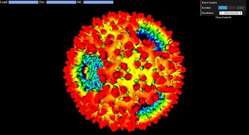 新版EMDB数据远程可视化工具提供基于Web的在线EMDB数据预览查看及三维交互,支持Chrome、Firefox、Safari等一系列主流浏览器,使用过程中无需另行安装插件或其它运行环境。新版工具在原有可视化工具基础上对可视化效果进行了改进,通过等值面结合颜色映射的方法更好地展现了EM数据内部形态;加入了新的数据减量传输策略,大幅降低了网络通讯量及数据下载时间;并采用渐近式可视化方法加快了页面响应速度,提升了用户交互体验。