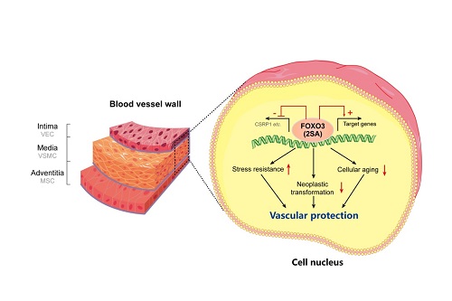 图. FOXO3功能增强可延缓血管衰老,增强应激抵抗并防止细胞癌变