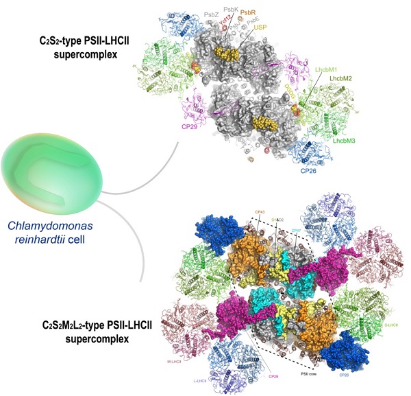 衣藻C2S2和C2S2M2L2型PSII-LHCII超级复合物的三维结构