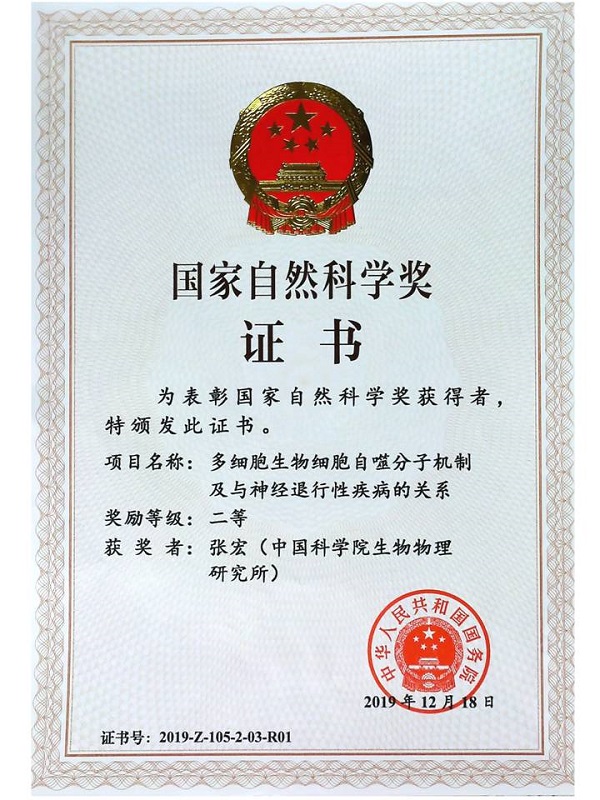 金沙集团1862cc张宏研究团队的“多细胞生物细胞自噬分子机制及与神经退行性疾病的关系”项目被授予2019年度国家自然科学奖二等奖。