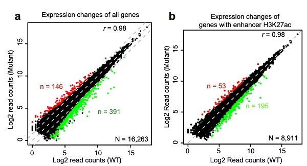 增强子区域H3K27ac的丢失不影响整体基因转录