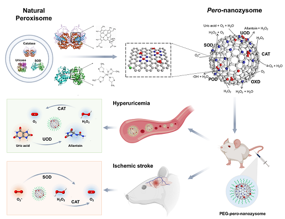 图1仿生设计纳米酶模拟过氧化物酶体用于改善高尿酸血症和缺血性中风
