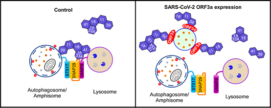 该研究首次揭示COVID-19的致病病毒SARS-CoV-2编码的辅助蛋白ORF3a通过阻断自噬体与溶酶体的融合来抑制自噬活性、逃脱自噬降解的新机制,对于理解SARS-CoV-2的高传染性和致病性以及开发潜在的COVID-19治疗方法有重要意义。