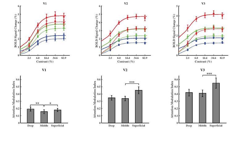 张朋课题组通过7T功能磁共振技术揭示人类视皮质区层特异的注意调控机制