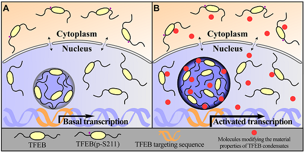 2022年3月16日,中科院生物物理研究所张宏课题组在《Journal of Cell Biology》杂志在线发表题为"Material properties of phase-separated TFEB condensates regulate the autophagy-lysosome pathway"的研究论文。该研究通过发展生物物理交叉的技术方法,定量分析了转录因子TFEB通过相分离形成的凝聚体的物理性质,发现该凝聚体利用刚性的界面膜控制自身融合特性和凝聚体大小,并基于TFEB凝聚体的物理性质开发干预自噬-溶酶体通路活性的新策略。
