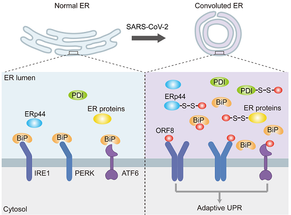 该研究揭示了新冠病毒辅助蛋白干扰宿主细胞内质网稳态的新机制。ORF8稳定性受氧化还原调控这一发现也为干预新冠病毒感染提供了新靶点和干预手段。