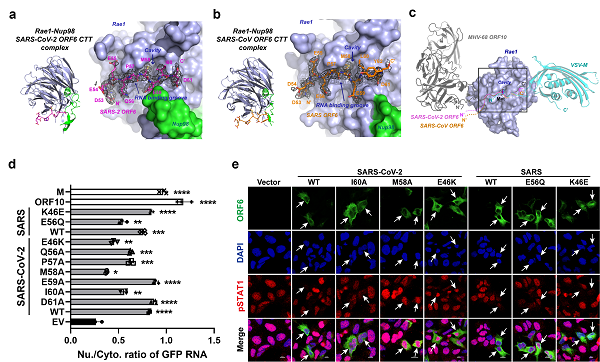 SARS-CoV-2/SARS-CoV ORF6与Rae1-Nup98的复合物晶体结构及其对核质转运的抑制作用