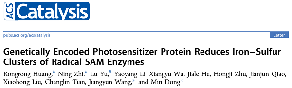 相关工作近日以 "Genetically Encoded Photosensitizer Protein Reduces Iron-Sulfur Clusters of Radical SAM Enzymes" 为题在线发表于美国化学会ACS Catalysis(DOI: 10.1021/acscatal.2c05143)。(IF:13.7) 天津大学硕士研究生黄荣荣、支宁、中科院强磁场科学中心田长麟课题组副研究员于璐为本文的并列第一作者,中科院生物物理研究所王江云研究员、天津大学董敏教授为论文的共同通讯作者。该研究得到科技部、国家自然科学基金委和中科院的经费支持。