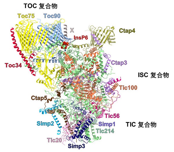 图2:TOC-TIC超复合体中各蛋白亚基的定位和组装。
