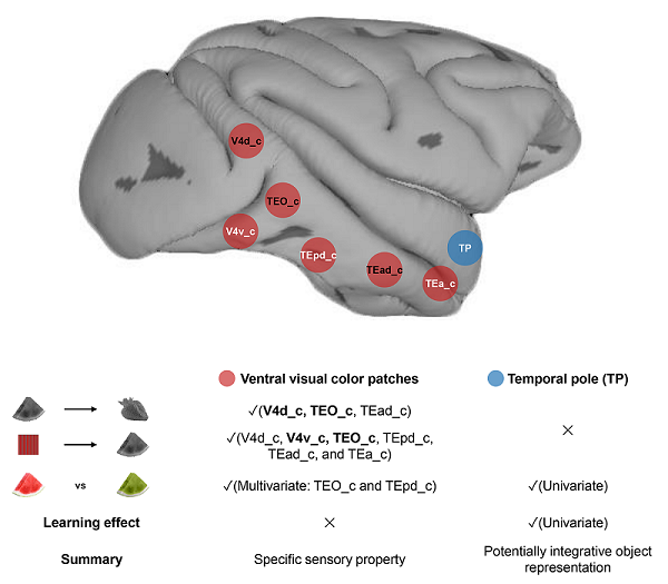 图2. 工作总结图:猕猴大脑对物体颜色知识的分布式表征