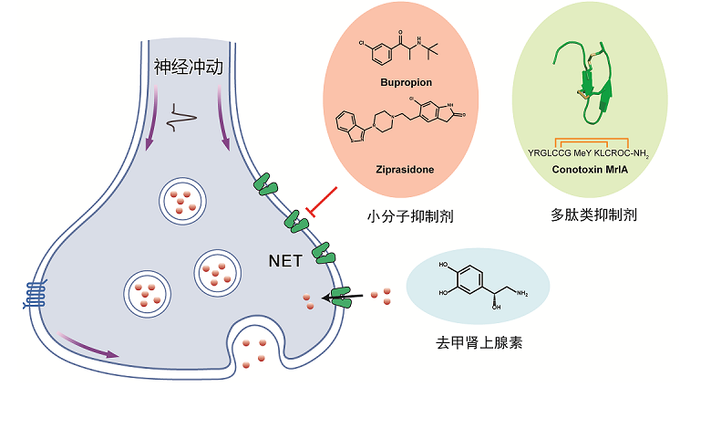 赵岩研究组与合作者揭示去甲肾上腺素转运体转运机制及小分子和多肽类药物的结合模式