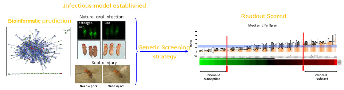 1. 天然免疫系统是生物机体抵抗病源入侵的第一道防线,有着极其重要的作用,并在进化中保持着高度的保守性。果蝇由于拥有精细复杂的天然免疫系统,便利快捷的遗传操作手段,已经成为研究天然免疫系统和模拟高等动物感染的理想疾病模型。因此我们拟建立一系列果蝇遗传筛选体系,寻找参与天然免疫调节的新因子,新通路和新机制,加深天然免疫同其他生理病理通路之间的网络调控机制的理解, 以期能够更好的从机体的整体水平上掌控天然免疫的调控机理,解决困扰人类的多种天然免疫相关问题,增强我们抵抗病原微生物感染的能力。