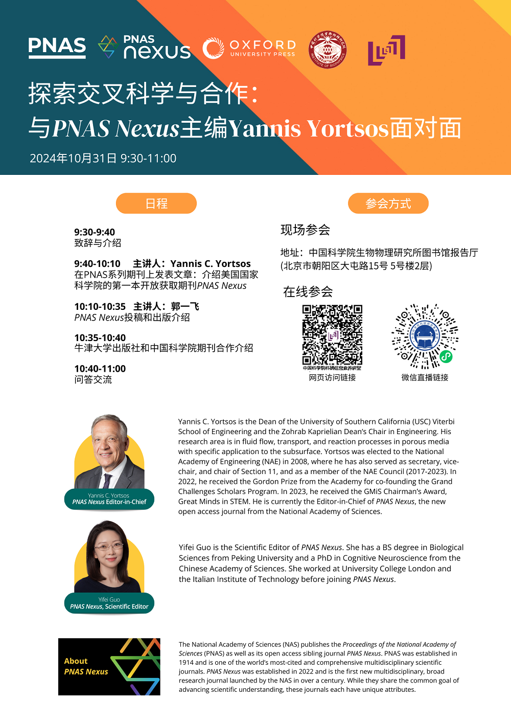 10月31日上午9:30学术讲座:探索交叉科学与合作:与PNAS Nexus主编Yannis Yortsos面对面