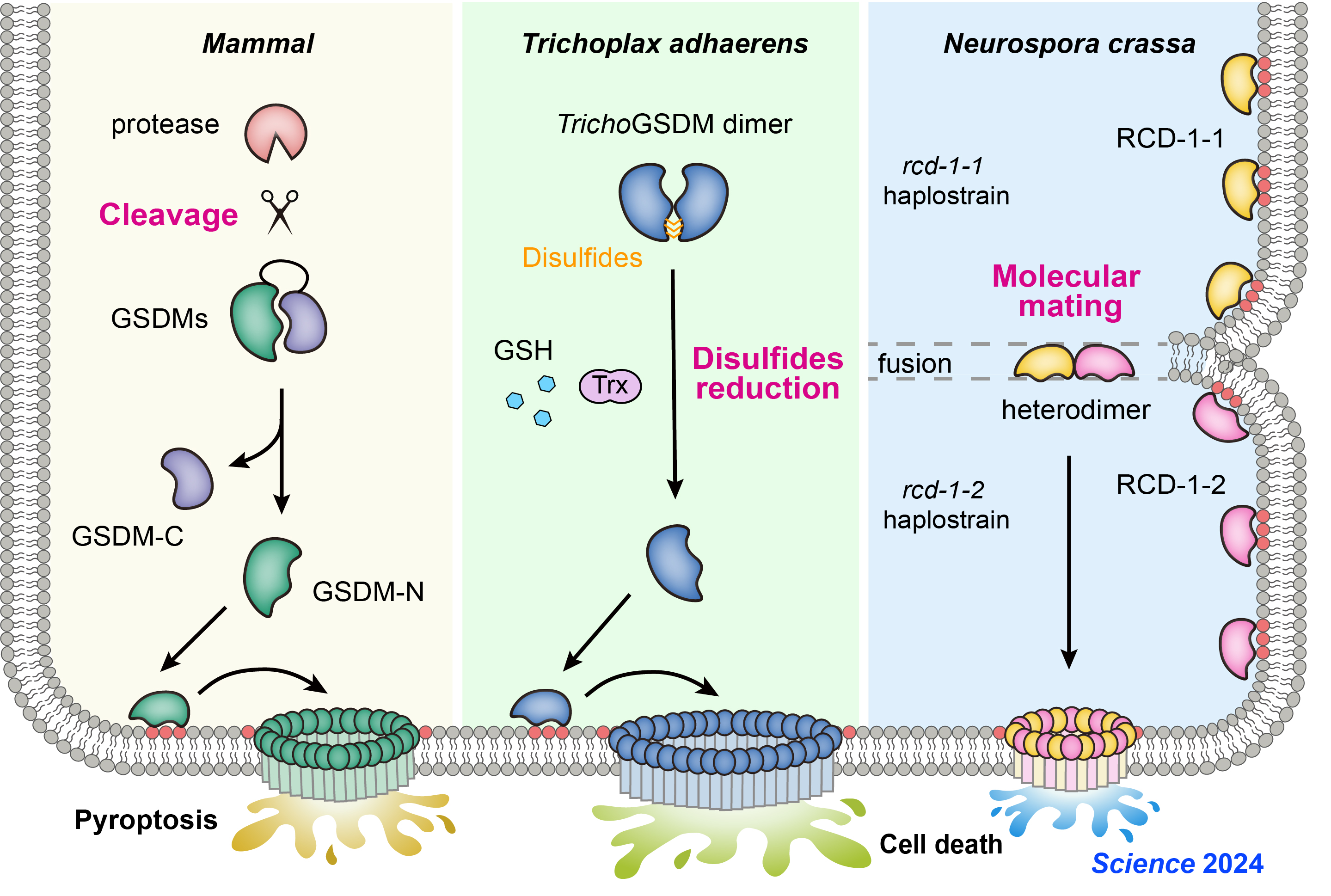 1. Li, Y.#, Hou, Y.#, Sun, Q.#, Zeng, H., Meng, F., Tian, X., He, Q., Shao, F.* & Ding, J*. (2024) Cleavage-independent activation of ancient eukaryotic gasdermins and structural mechanisms. Science. 384(6697): adm9190.