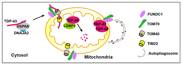 TDP-43蛋白可被转运至线粒体并引起线粒体损伤,但是对于TDP-43如何进入线粒体仍然知之甚少。此外,线粒体损伤是TDP-43在线粒体错误定位引起的,还是线粒体介导的TDP-43 降解的副作用,仍有待深入研究。