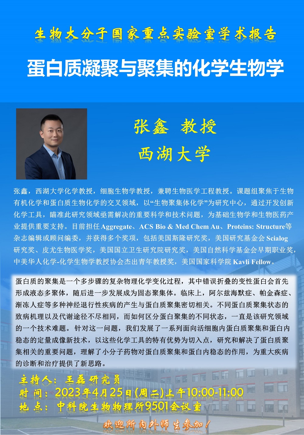 2023年4月25日上午10:00 生物大分子室级学术报告:蛋白质凝聚与聚集的化学生物学