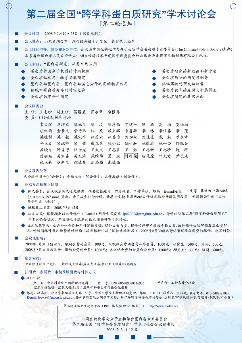 第二届全国“跨学科蛋白质研究”学术讨论会第二轮通知