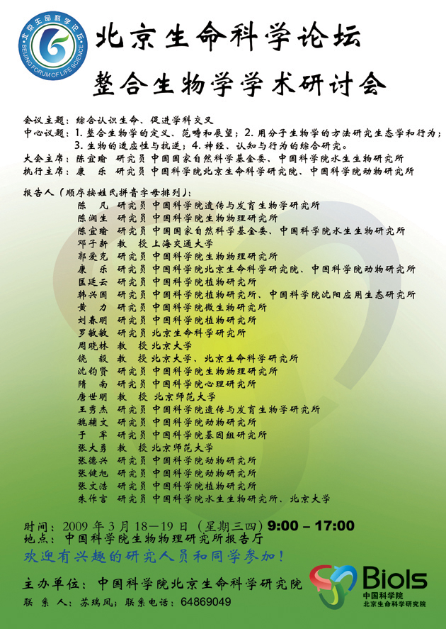 北京生命科学论坛--整合生物学学术研讨会通知