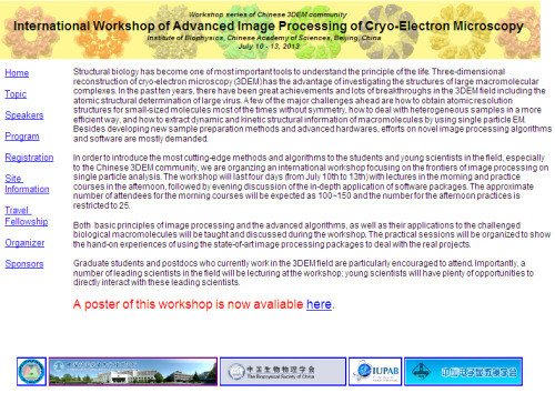 受中国生物物理学会和中国电子显微学会委托,我们将于7月10-13日在生物物理所举办低温电镜三维重构图像处理技术workshop,详细信息请您参考网站:http://cbi.ibp.ac.cn/workshop。