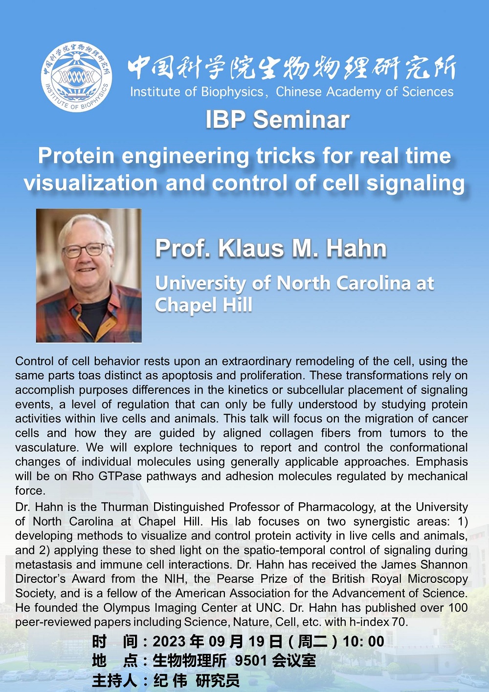 2023年9月19日上午10:00 IBP Seminar:Protein engineering tricks for real time visualization and control of cell signaling