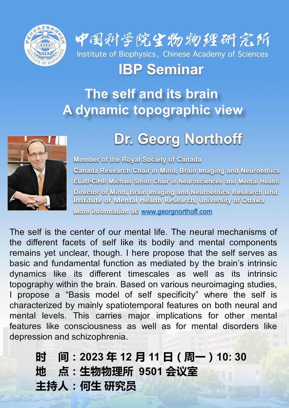 2023年12月11日上午10:30 IBP Seminar:The self and its brain——A dynamic topographic view