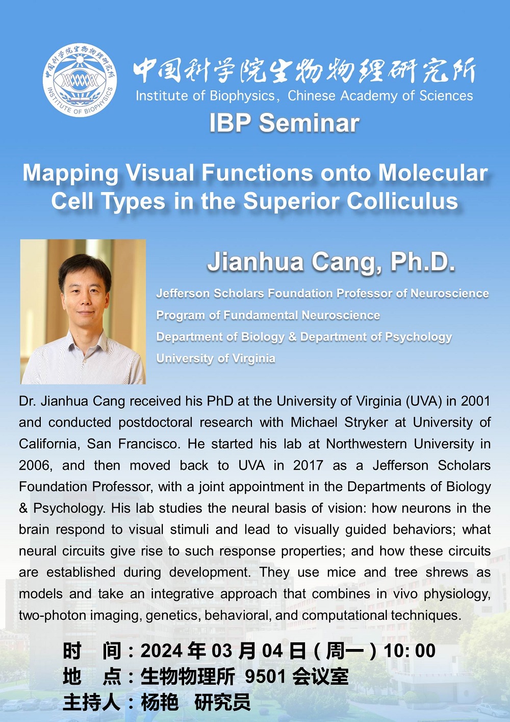 2024年3月4日上午10:00 IBP Seminar:Mapping Visual Functions onto Molecular Cell Types in the Superior Colliculus