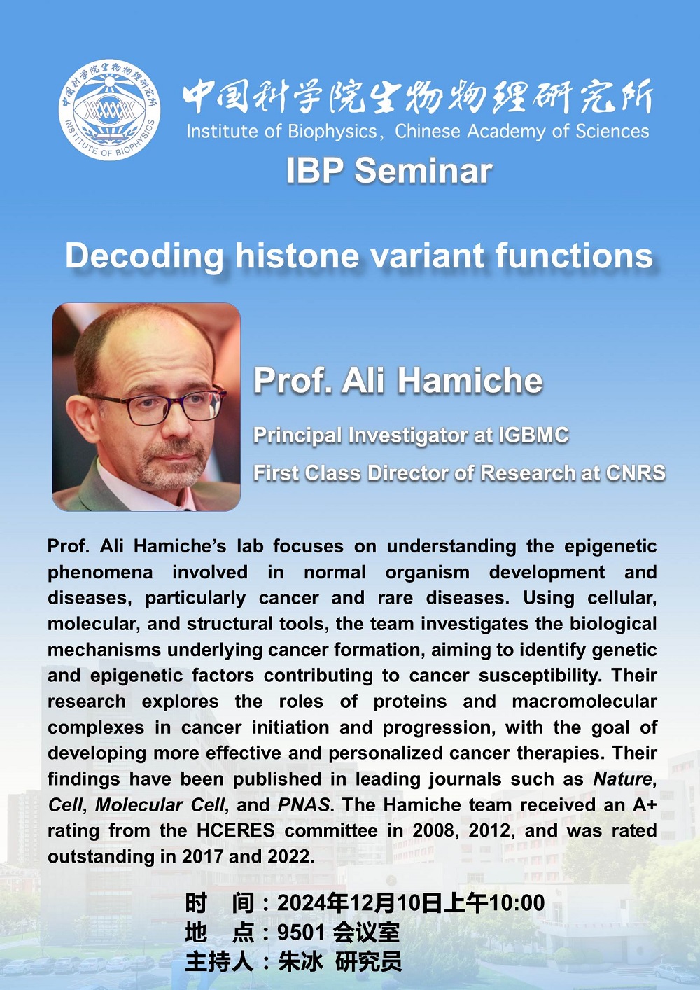 2024年12月10日上午10:00 IBP Seminar: Decoding histone variant functions