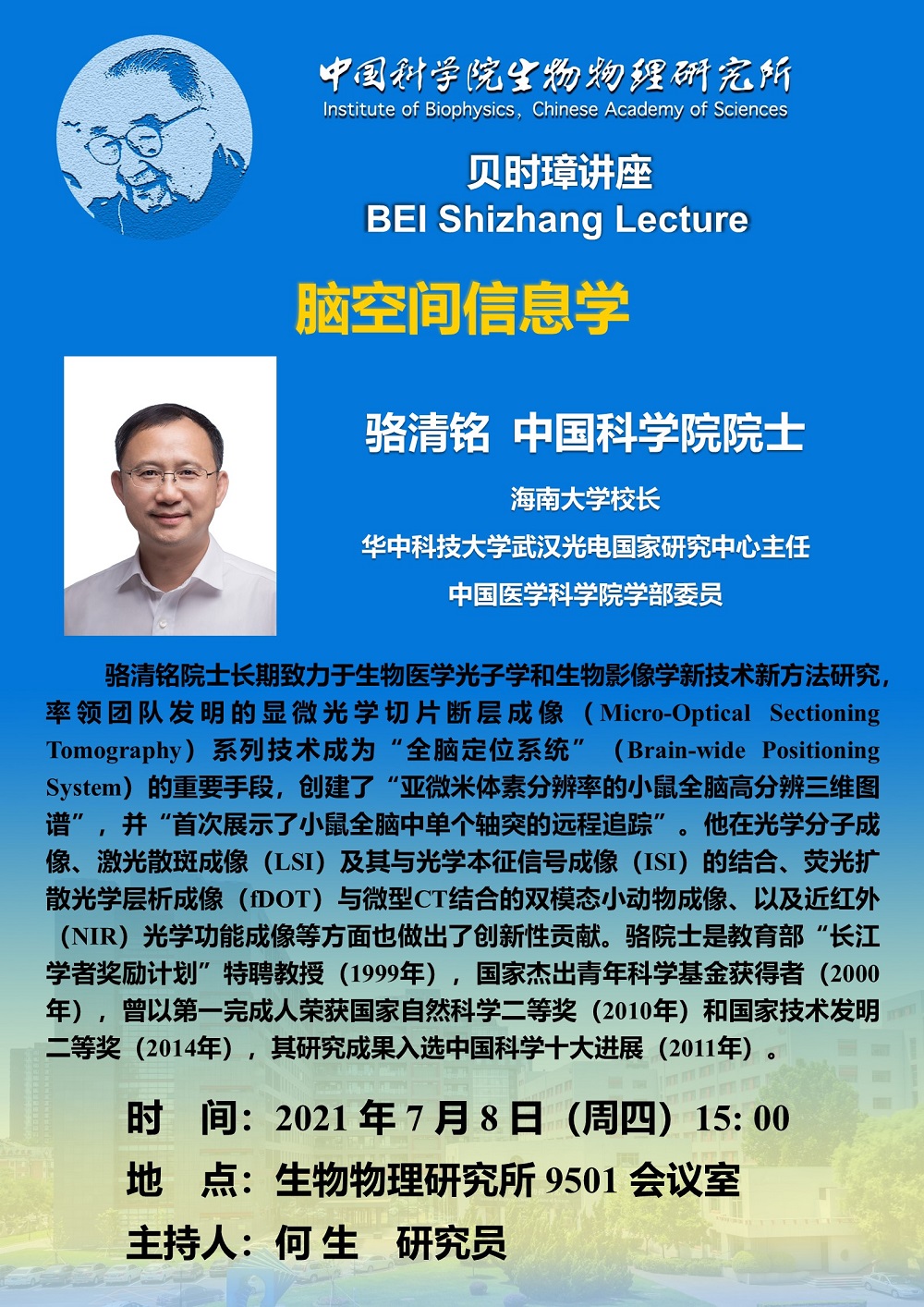 2021年7月8日下午15:00 贝时璋讲座报告:脑空间信息学